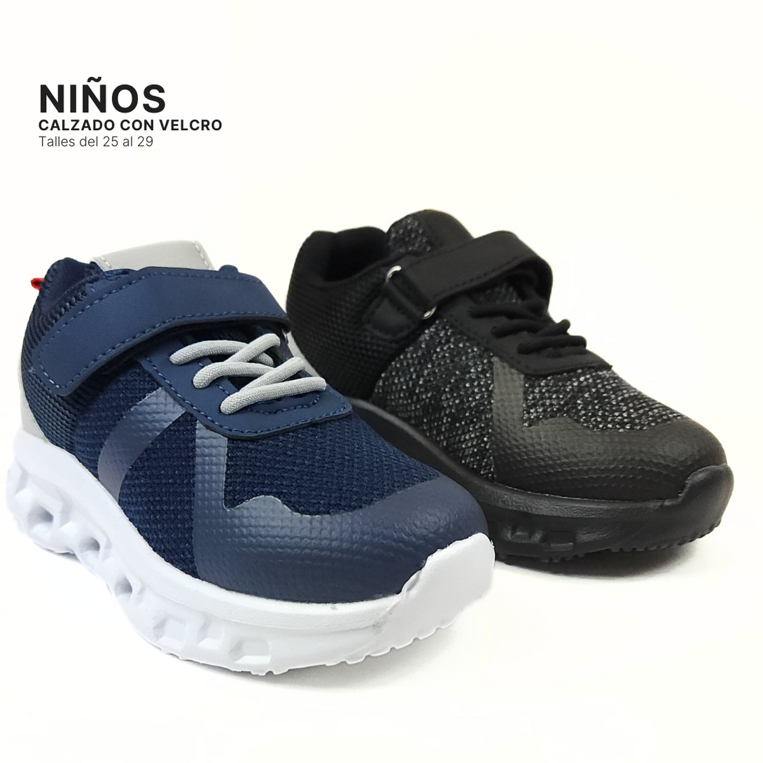 Zapatillas deportivas para niño con velcro y cordones elásticos, ideales para uso diario y actividades escolares. Diseño liviano y cómodo para brindar libertad en cada paso.