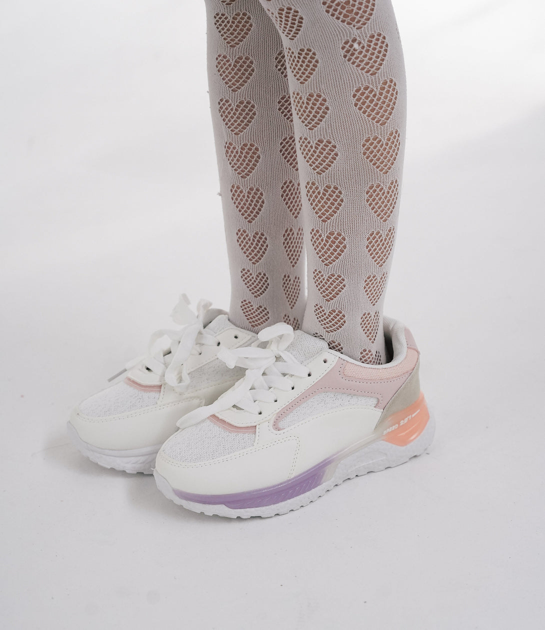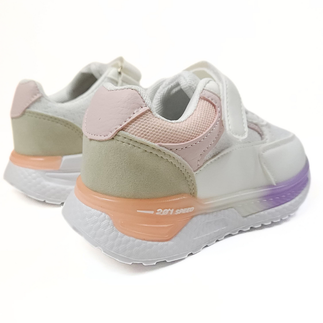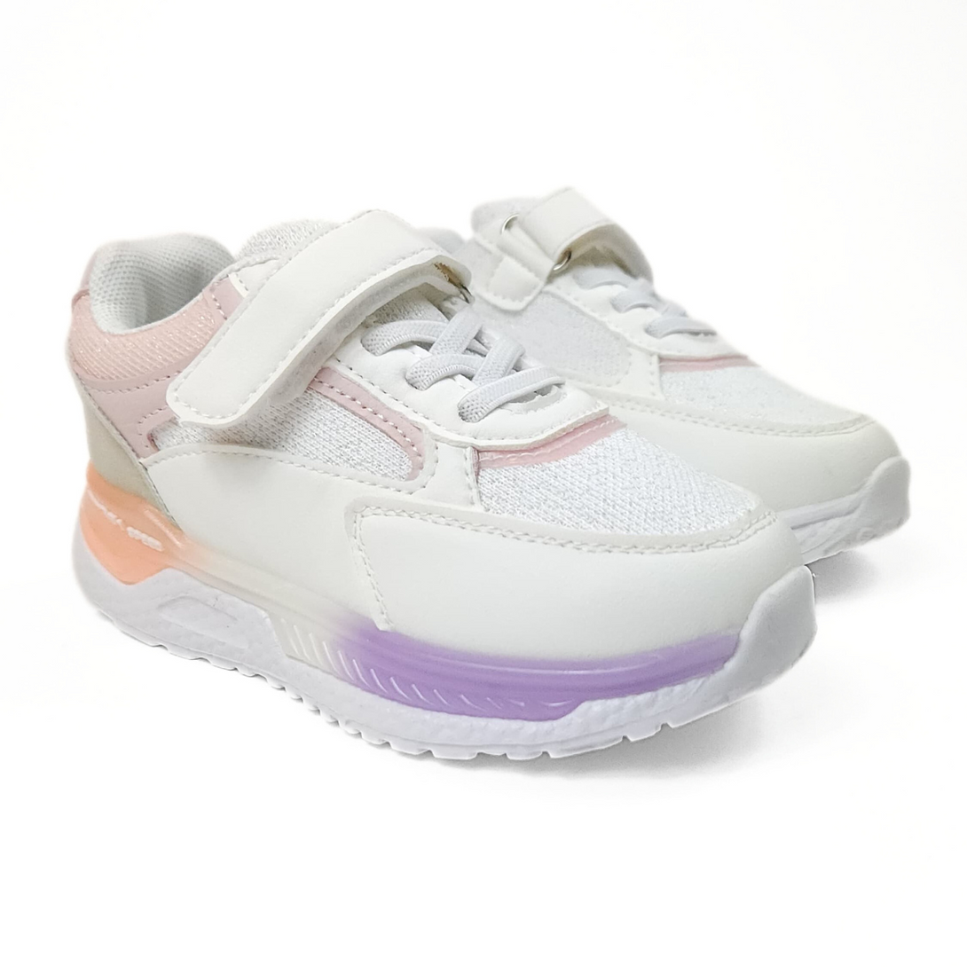 Zapatillas deportivas para niña, cómodas y ligeras, disponibles del talle 25 al 34. En color blanco y rosado, ideal para combinar con cualquier look.