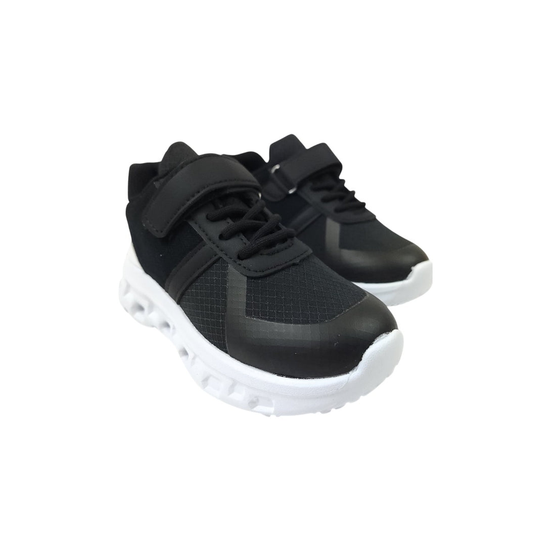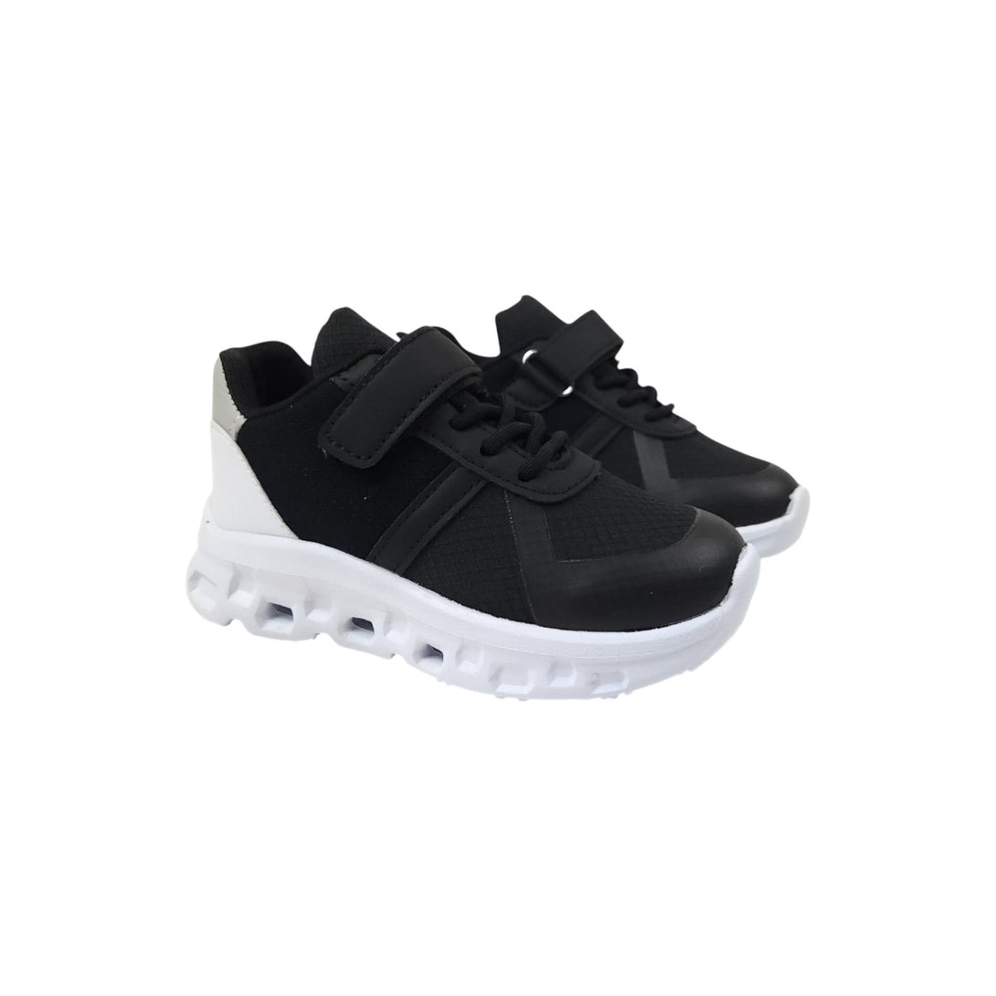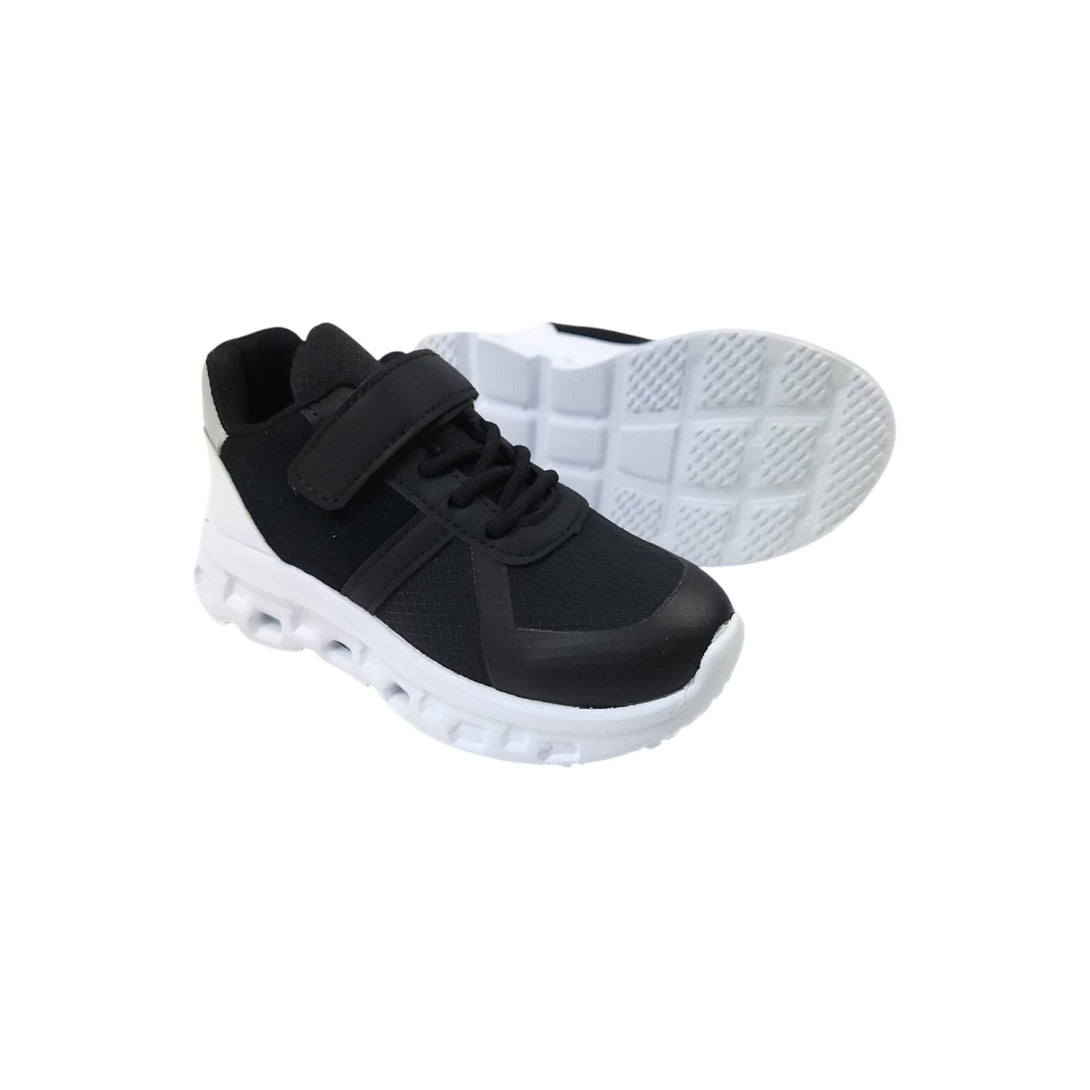 Zapatillas deportivas para niño, con diseño moderno y suela liviana para mayor confort. Incluyen cordones elásticos y cierre con velcro para un ajuste rápido y seguro. Ideales para uso diario y actividades escolares.